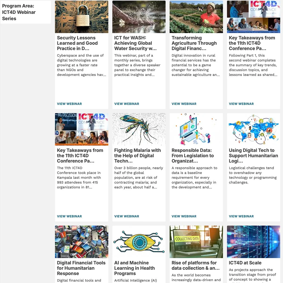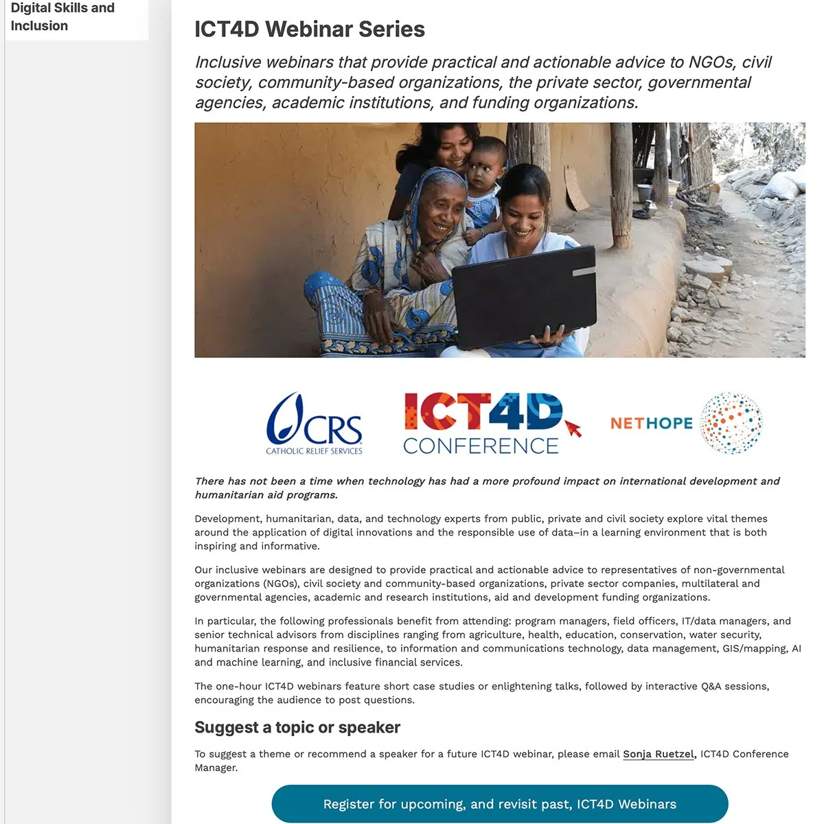 The ICT4D Webinar Series landing page.